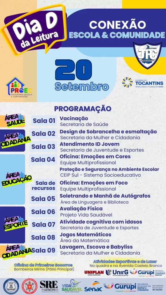 A manhã contará com atividades culturais, educativas, esportivas e de lazer, além de serviços voltados à saúde e ao bem-estar, em uma parceria estratégica entre a escola e diversas secretarias municipais e estaduais, bem como instituições parceiras. Entre as ações disponíveis, estão: