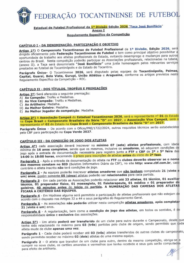 REGULAMENTO DO CAMPEONATO TOCANTINENSE 2026