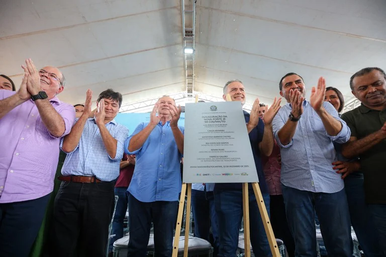 O governo federal entregou em solenidade nesta segunda-feira, 22, a nova ponte Juscelino Kubitschek, entre Aguiarnópolis e Estreito (MA). A estrutura original desabou há exatamente um ano, tragédia que resultou em 14 mortes e três desaparecimentos. Apenas uma vítima sobreviveu. A cerimônia de reinauguração contou com a presença do ministro dos Transportes, Renan Filho (MDB), do diretor-geral do Departamento Nacional de Infraestrutura de Transportes (DNIT), Fabrício Galvão, e dos governadores do Tocantins, Wanderlei Barbosa (Republicanos), e do Maranhão, Carlos Brandão (PSB).