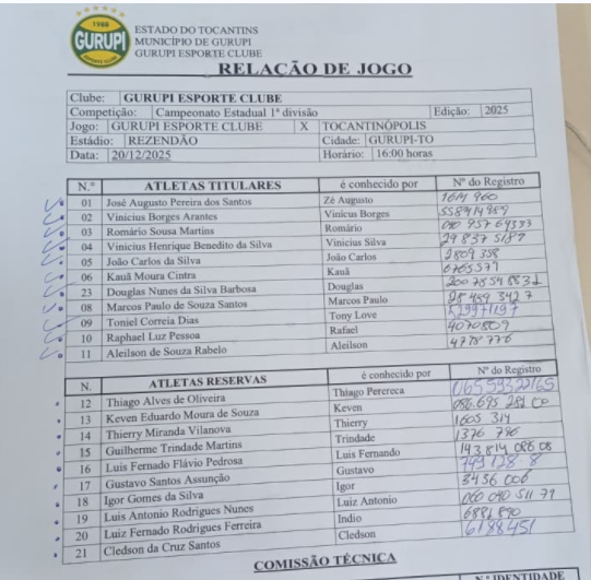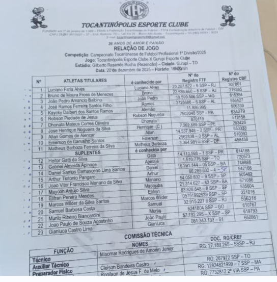 No chamado “jogo da chuva”, iniciado no sábado e finalizado neste domingo (21), o Tocantinópolis Esporte Clube (TEC) venceu o Gurupi por 2 a 1, no Estádio Resendão, em Gurupi, pela partida de ida das semifinais do Campeonato Tocantinense 2025.