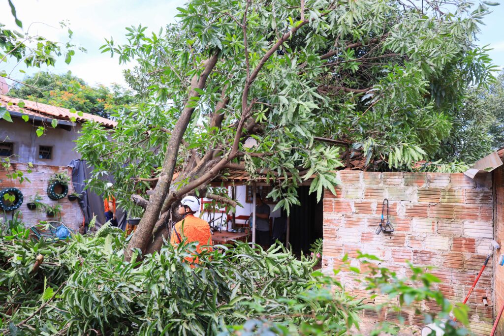 Cerca de 20 trabalhadores da Secretaria Municipal de Zeladoria Urbana executaram a remoção de árvores e galhos caídos, cortes preventivos em exemplares com risco de queda e a limpeza geral das áreas atingidas. O material resultante da limpeza é recolhido e transportado de forma adequada, garantindo mais segurança para moradores e motoristas que transitam pelo bairro.