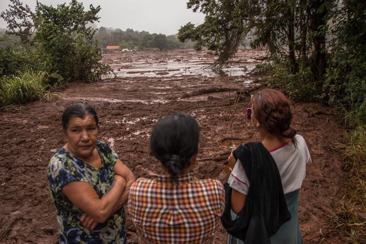 Moradoras de Brumadinho observam a destruição causada pelo rio de lama e rejeitos tóxicos. Foto: Mídia Ninja